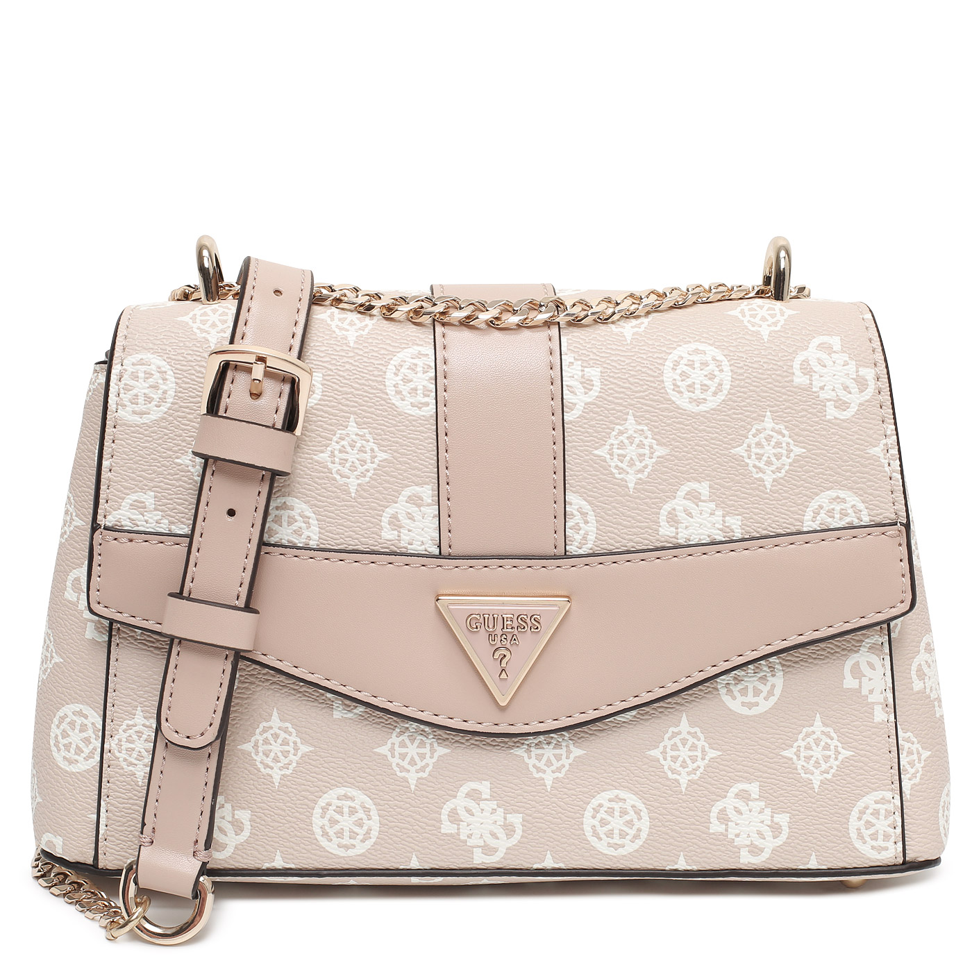 Сумка через плечо с цепочкой Guess Dorys HWPG95 21210_sand logo_pc - 2000558732192 розовый полиуретан 25 x 15 x 8 Цена 10250 руб. купить в интернет-магазине PanChemodan.ru в Москве
