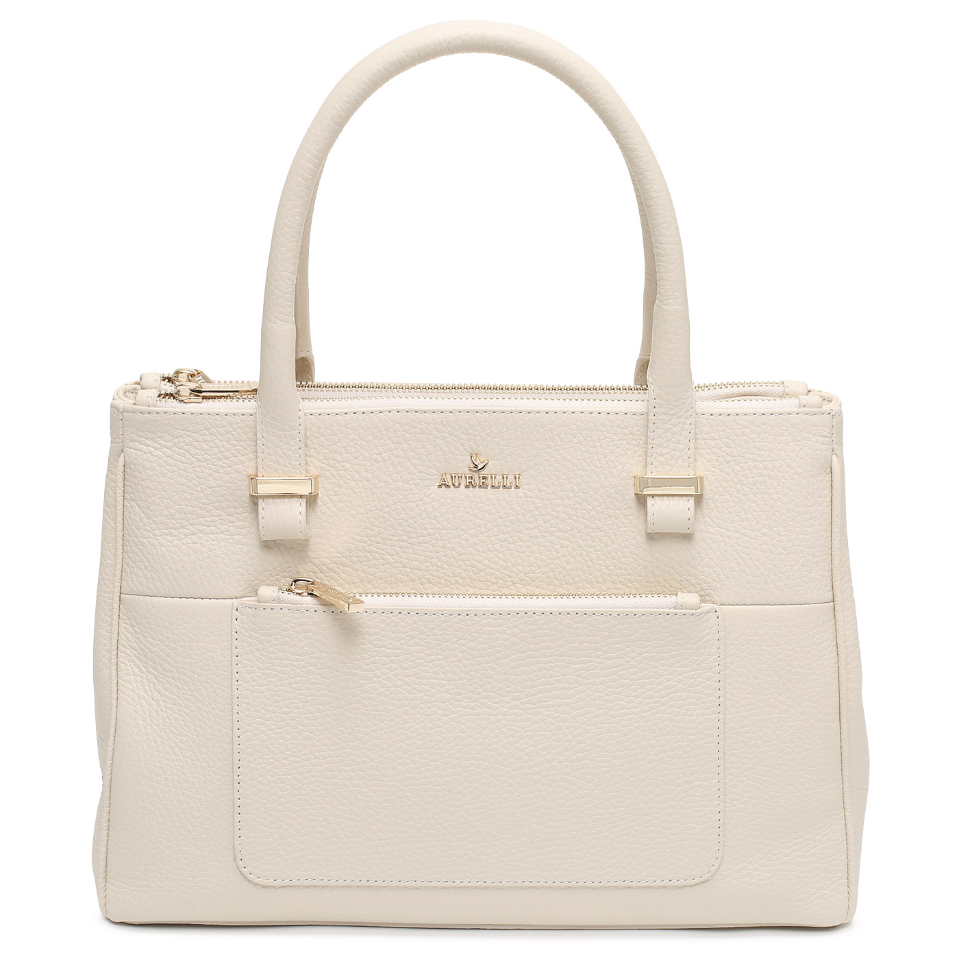 Сумка на молнии Aurelli Soft 15W003-21G-vaniglia_pc - 2000558301916 бежевый натуральная кожа 32 x 23 x 11 Цена 23380 руб. купить в интернет-магазине PanChemodan.ru в Москве