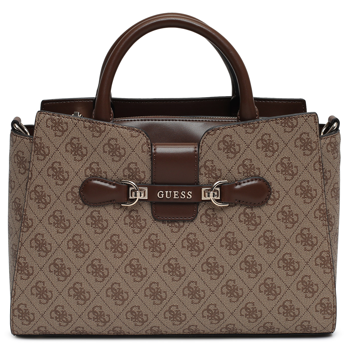 Сумка с короткими ручками Guess Nolana HWSG95 00060_latte logo/brown_pc - 2000558697934 бежевый полиуретан 31,5 x 21,5 x 10,5 Цена 11250 руб. купить в интернет-магазине PanChemodan.ru в Москве
