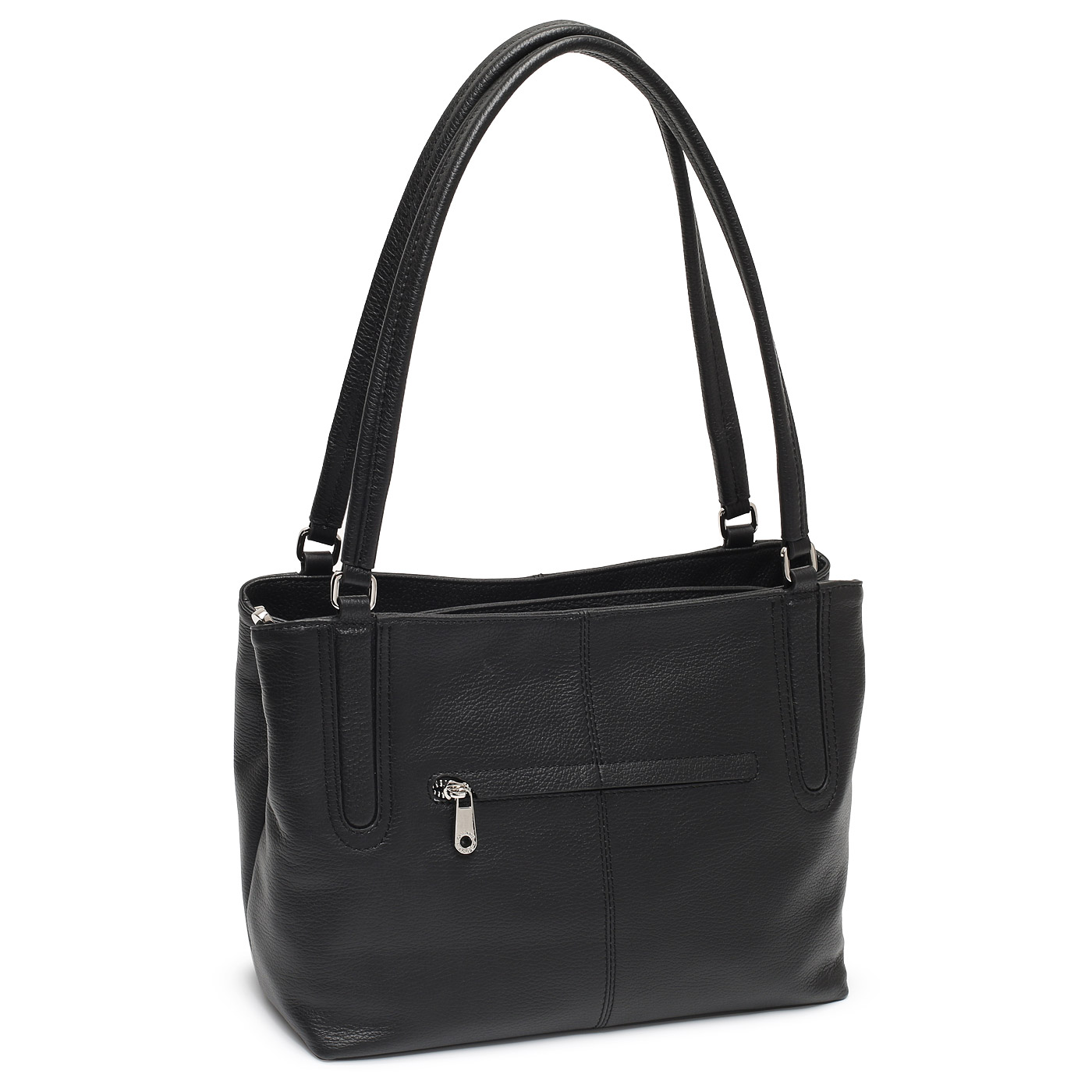 Женская сумочка из зернистой черной кожи через плечо